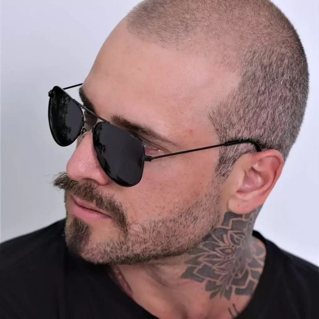 O Óculos de Sol Aviador Light KÖNIG combina lente preta com haste preta em metal premium, criando um visual elegante e atemporal que se adapta a qualquer estilo — do casual ao sofisticado.